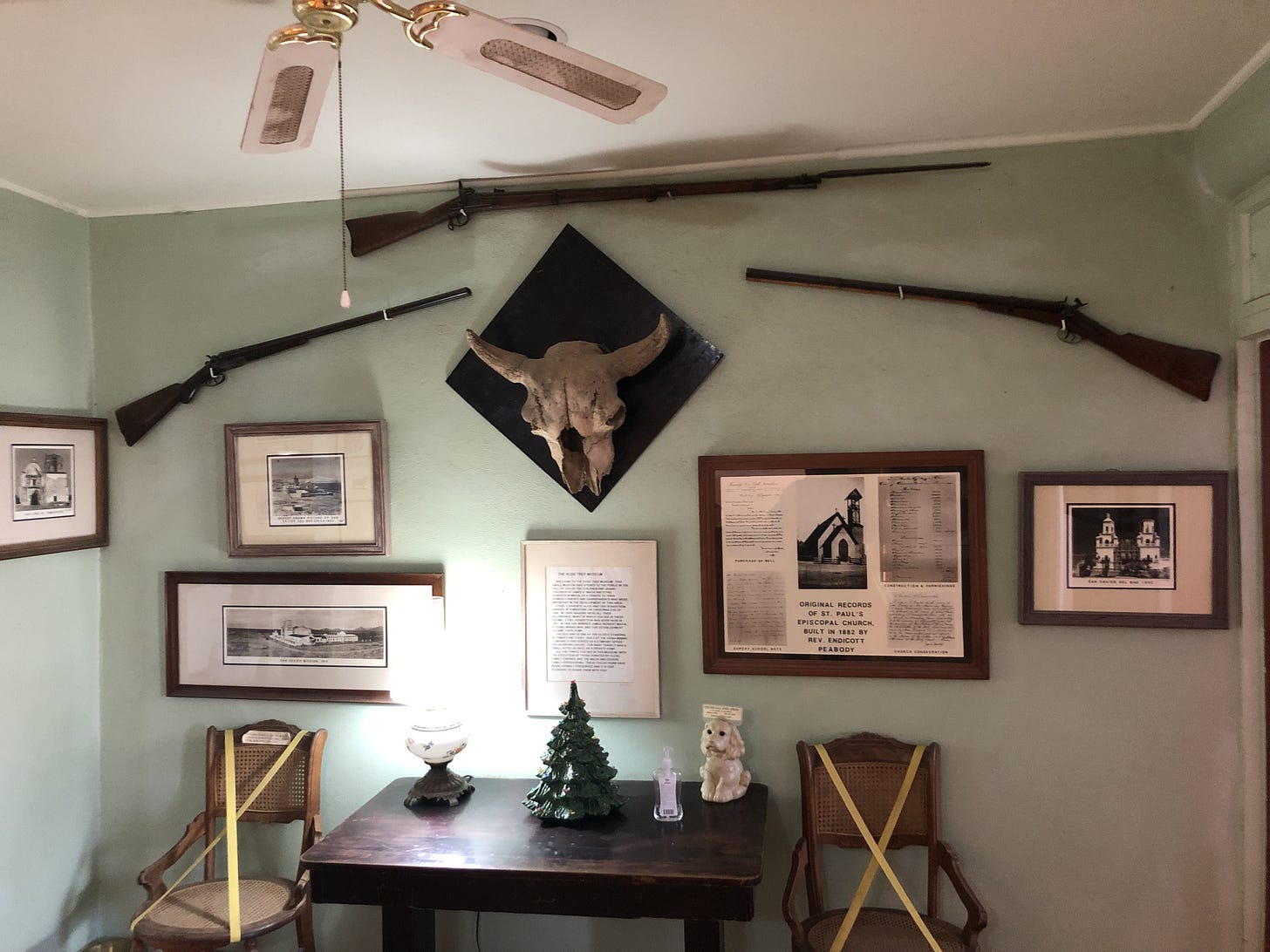In December 2021 my lovely wife and I drove to Tombstone from Houston. I was looking forward to seeing the Tombstone Rose, purportedly the largest rose “tree” in the world. The story goes that a box arrived in Tombstone from Scotland with a cutting of a Lady Banksia Tea Rose which was inadvertently planted in a garden above the sewer system of the town. With everyone in town contributing to the rich fertilized bed, the plant was able to thrive in the inhospitable Arizona desert. Visiting the rose being our primary goal so we were disappointed that the Rose Tree Museum was closed when we arrived. We spent the afternoon and evening wandering around the town with its wooden sidewalks, dirt streets and myriad souvenir shops. We finally wound up at Big Nose Kate’s saloon for a bite to eat and a beer for me. A very friendly waiter took the time to give us the story of Tombstone, and interestingly the offer the town got when its namesake movie was remade in 1993. The movie production executives wanted to use the town for filming, and despite concessions and cash, the town said no. Frontier independence and a desire for normalcy are alive and well in the American West.
